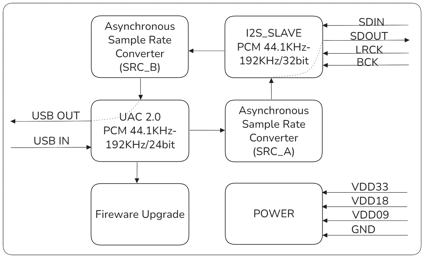 4通道ASRC OTG 44.1KHz~192KHz音频采样率转换器集成2路I2S从接口